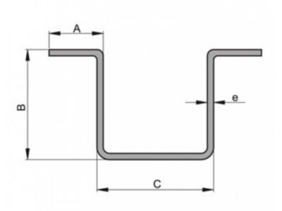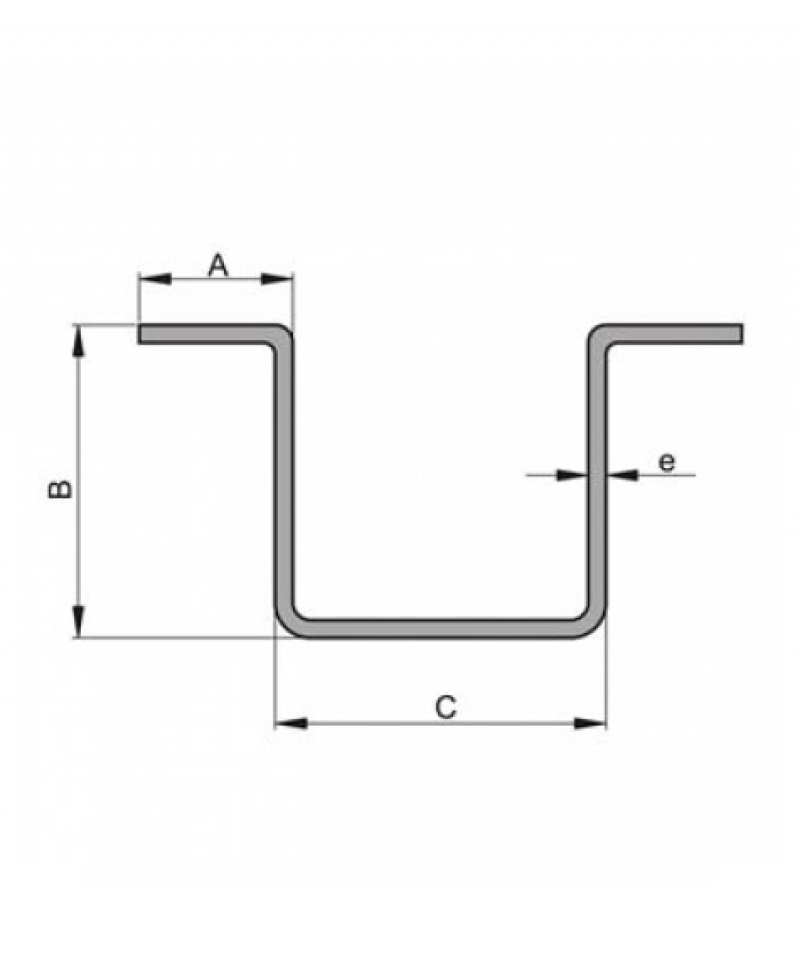 | Dimensión A | Dimensión B | Dimensión C | Dimensión e | Peso (Kg/m) | Longitud |