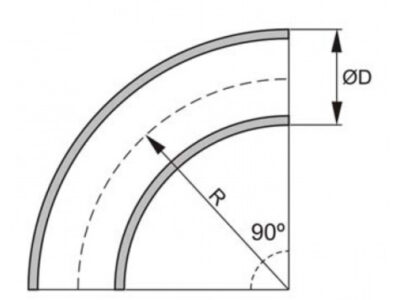 Radi mitjà a l’eix (R), igual a 1½ vegades el diàmetre interior de la canonada (aproximadament).